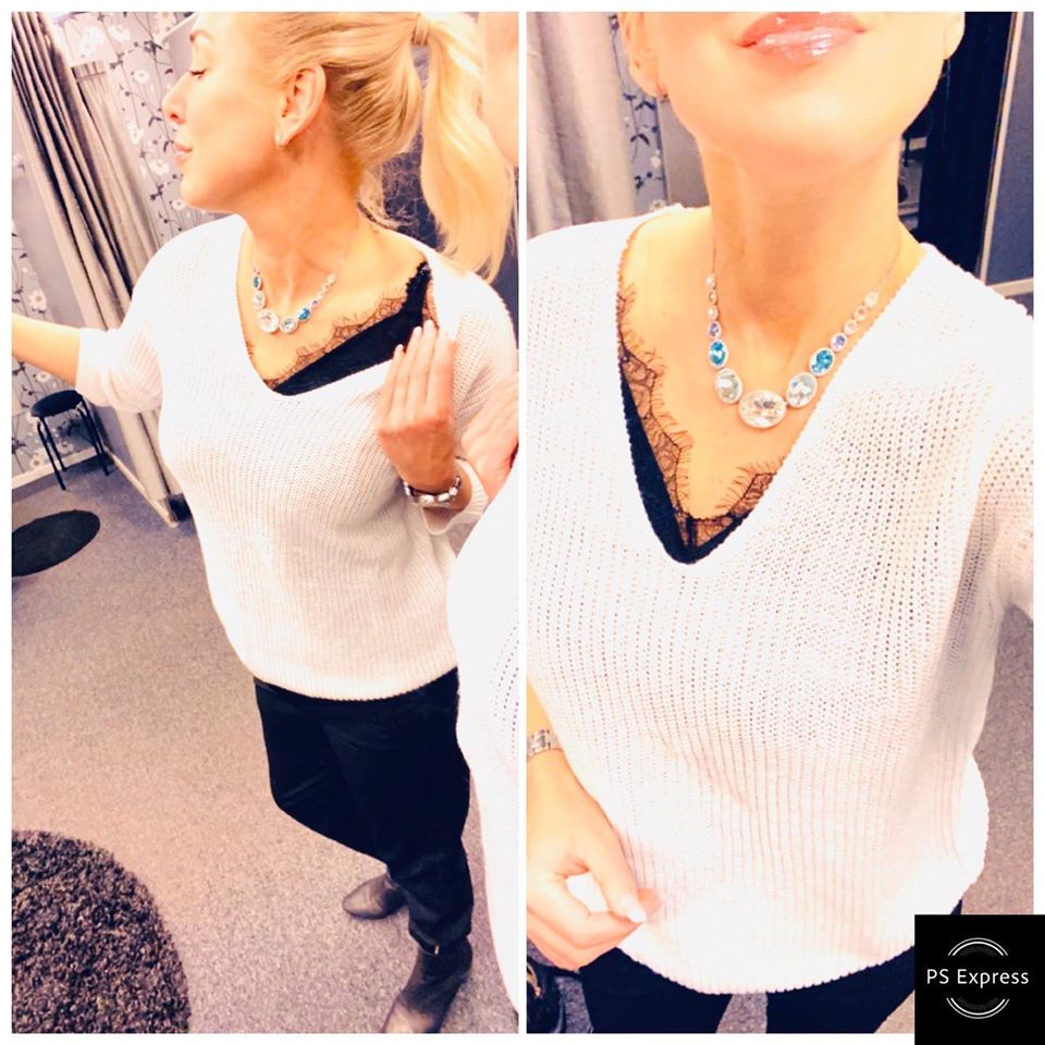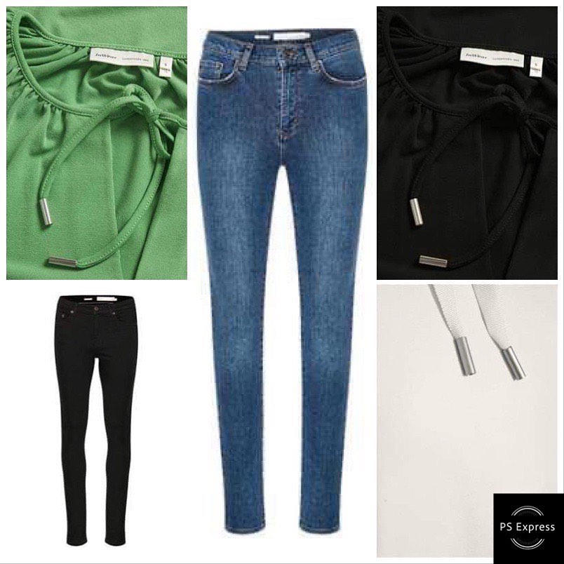 Toppar i svart, vitt, grönt och marinblått med snygga detaljer.